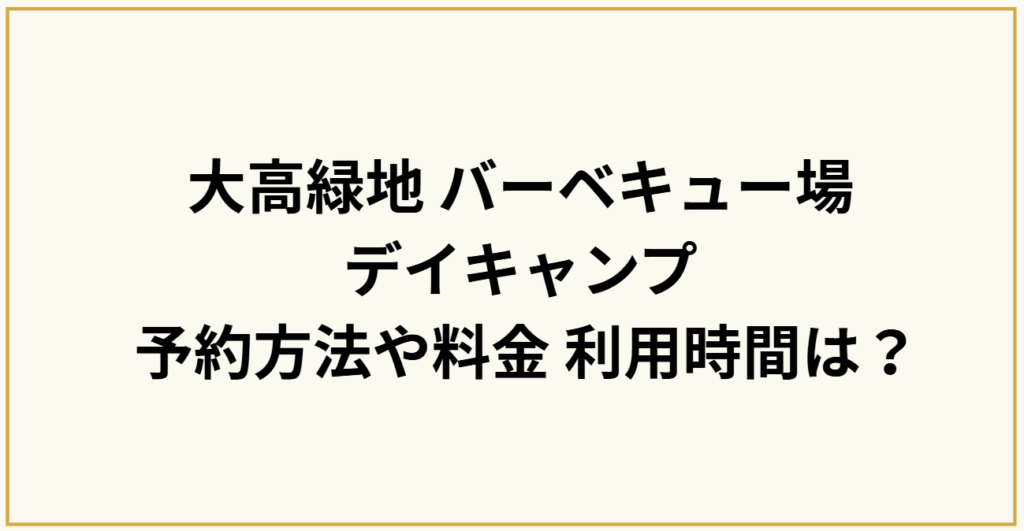 大高緑地 バーベキュー場 デイキャンプ 予約方法や料金 利用時間は?